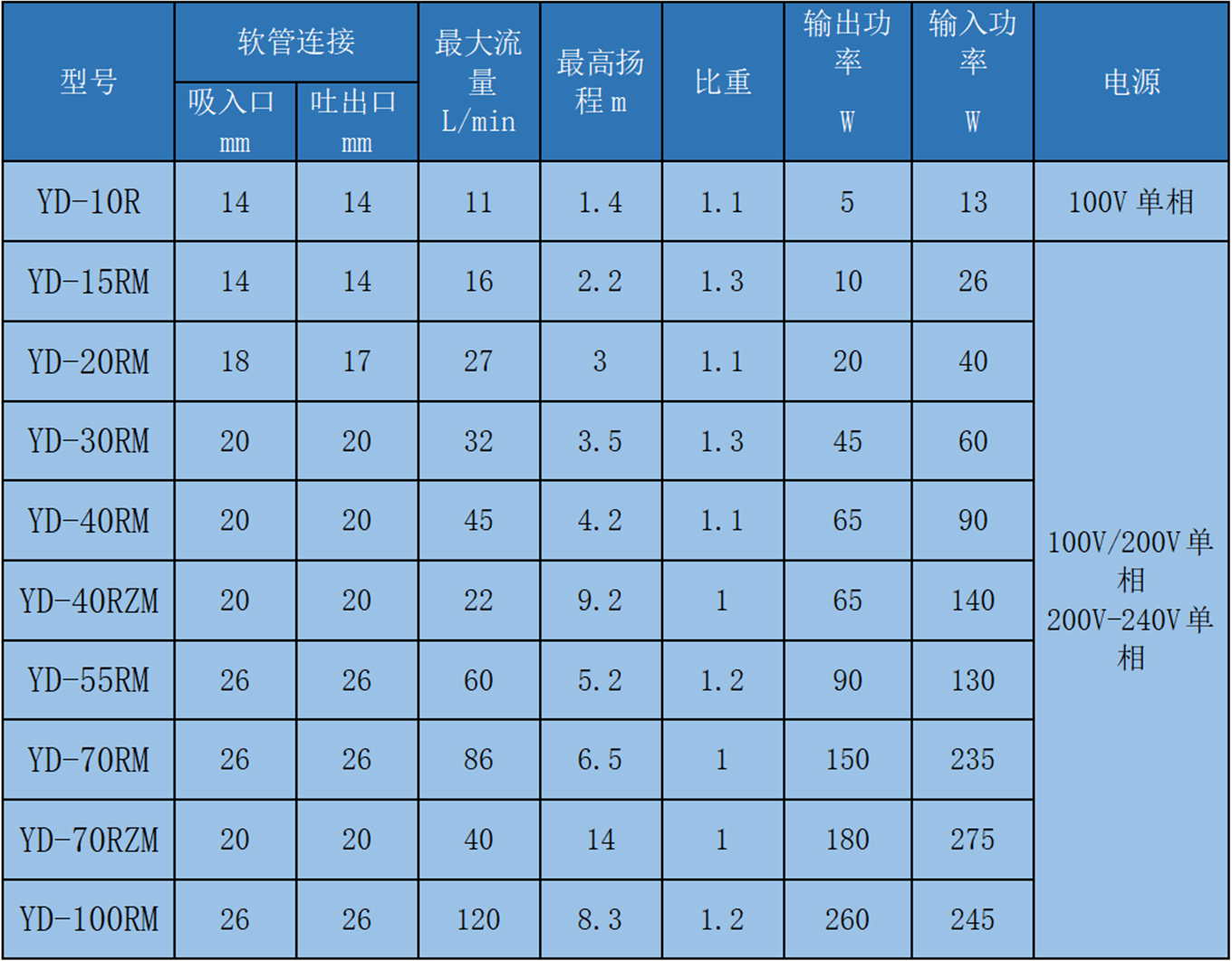 備注:YD-10R沒有螺紋連接型。 液體溫度范圍:0℃—80℃(輸出液體溫度低于0℃時請咨詢業(yè)務部) 液體粘液范圍:30mPa.s(比重為1S.G.時)。